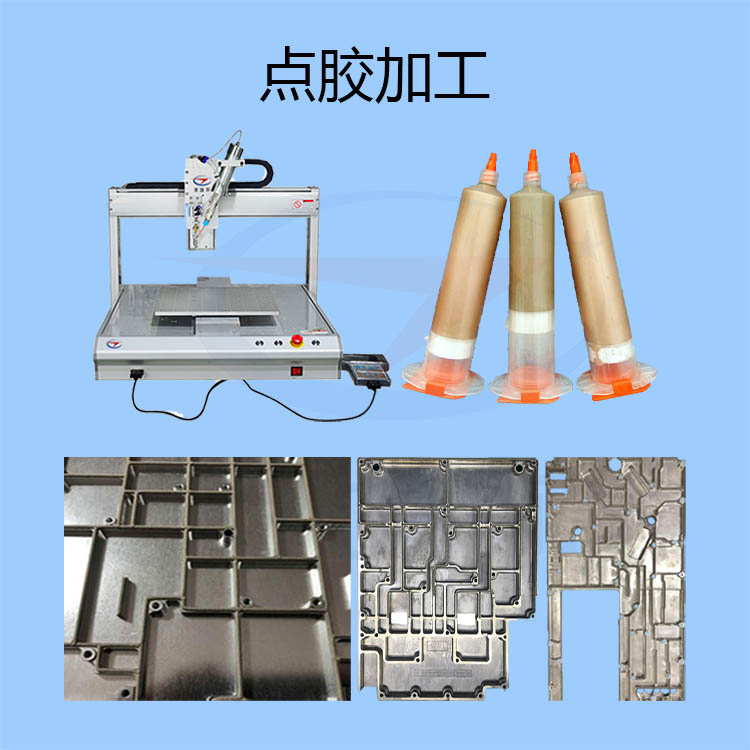 在通訊基站導電膠點膠加工中所用的導電膠是一種在固化或干燥后具有一定導電性能的膠黏劑,通訊基站導電膠點膠加工用導電膠通常以樹脂基體和導電填料(導電粒子)為主要組成成分,通過基體樹脂的粘接作用把導電粒子結合在一起,形成的的導電膠經點膠代加工后的膠條通路能實現被粘材料的很好的導電連接。由于導電膠的樹脂基體是一種膠黏劑,可以選擇一個合適的固化溫度進行通訊基站導電膠點膠加工,而且導電膠點膠代加工工藝簡單,易于操作,可提高生產效率,所以導電膠導電膠代加工是替代鉛錫焊接, 實現導電連接通路的一個很好的選擇。