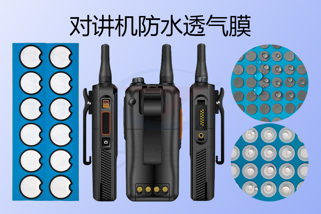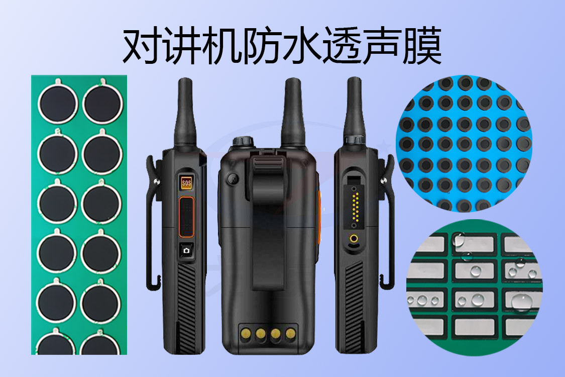 對講機防水透氣解決方案其實是通過戈埃爾對講機防水透聲膜或GOEL對講機防水透氣膜兩種高分子微孔防水膜材料來實現的,對講機防水透氣解決方案所用防水透聲膜一般是防水又透聲材料,一種是靠膜材振動透聲,還有一種是通過膜材微孔透聲,用在音腔結構是單個對講機喇叭害以及音腔不會產生壓力的情況下;如果對講機防水透氣解決方案要應用在音腔發聲比較空曠,同時又會產生內外壓力的情況下,此時對講機防水透氣解決方案采用對講機防水透氣膜進行防水防塵透聲的比較多。