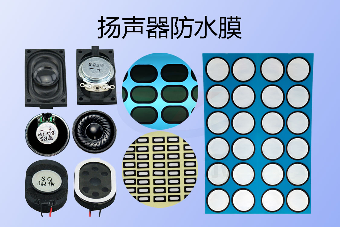 針對揚聲器、喇叭、蜂鳴器等電聲器件防水,戈埃爾提出了一種揚聲器防水膜、喇叭防水膜、聽筒防水膜、麥克風防水膜定制化解決方案,防塵防水防護等級能達到IP67級,還可以達到IP68級,防水性能更好、在實現更好的防水的前提下,還具有很好的透氣性能與透聲性能。揚聲器防水膜材料可以使得聲音音損控制在2dB范圍內,保證了聲音有很好的音質;揚聲器防水膜材料很好的透氣性能可以實現內部腔體與外部環境的大氣壓力差,避免因為壓差不平衡而使得聲音音質失真;揚聲器防水膜還具有很好的防塵性能,可以將灰塵等細小顆粒隔絕在外部。揚聲器防水膜一般是用在電子產品殼體的出音孔處,揚聲器防水膜還可以直接安裝在電聲器件然后通過防水密封膠點膠加工來實現防水密封。