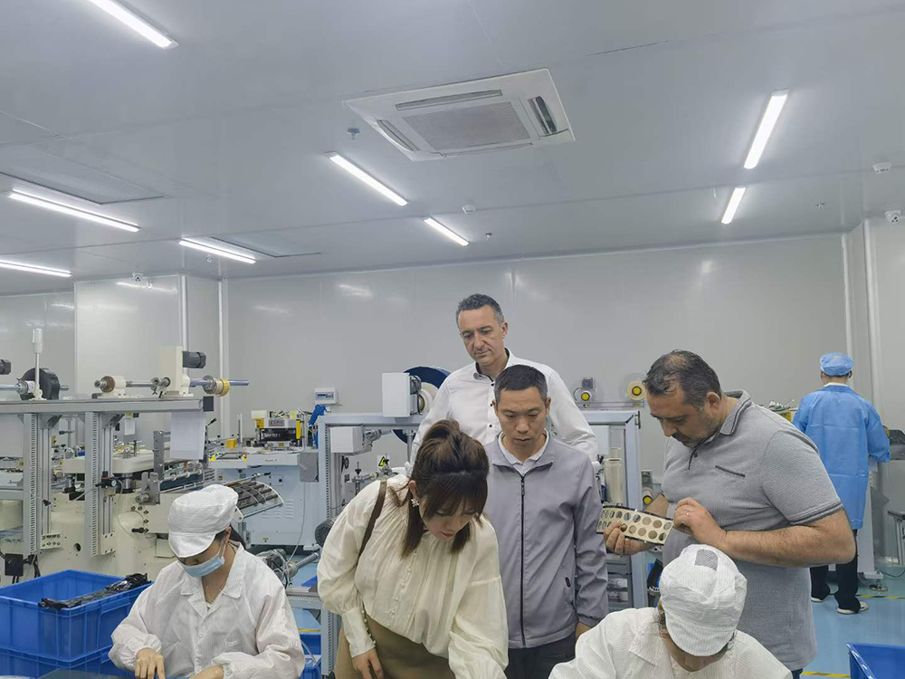 公司總經理姚龐先生代表公司對法國客戶的到來表示熱烈歡迎,并安排了細致的接待工作。在部門主要負責人的陪同下,客戶參觀考察了公司生產車間,了解了最新防水透氣膜透聲膜、以及防水測試機和氣密性檢測儀可持續發展的無限美好前景。