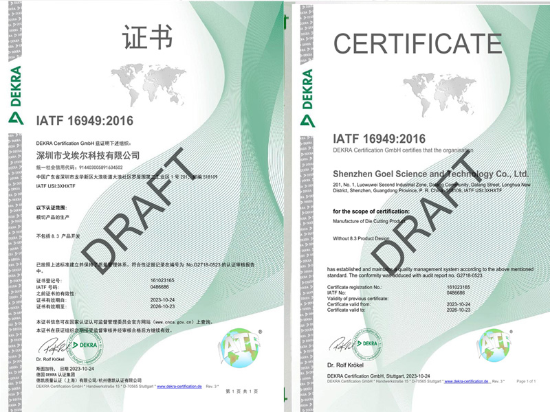 戈埃爾科技榮獲IATF16949汽車行業質量體系認證證書