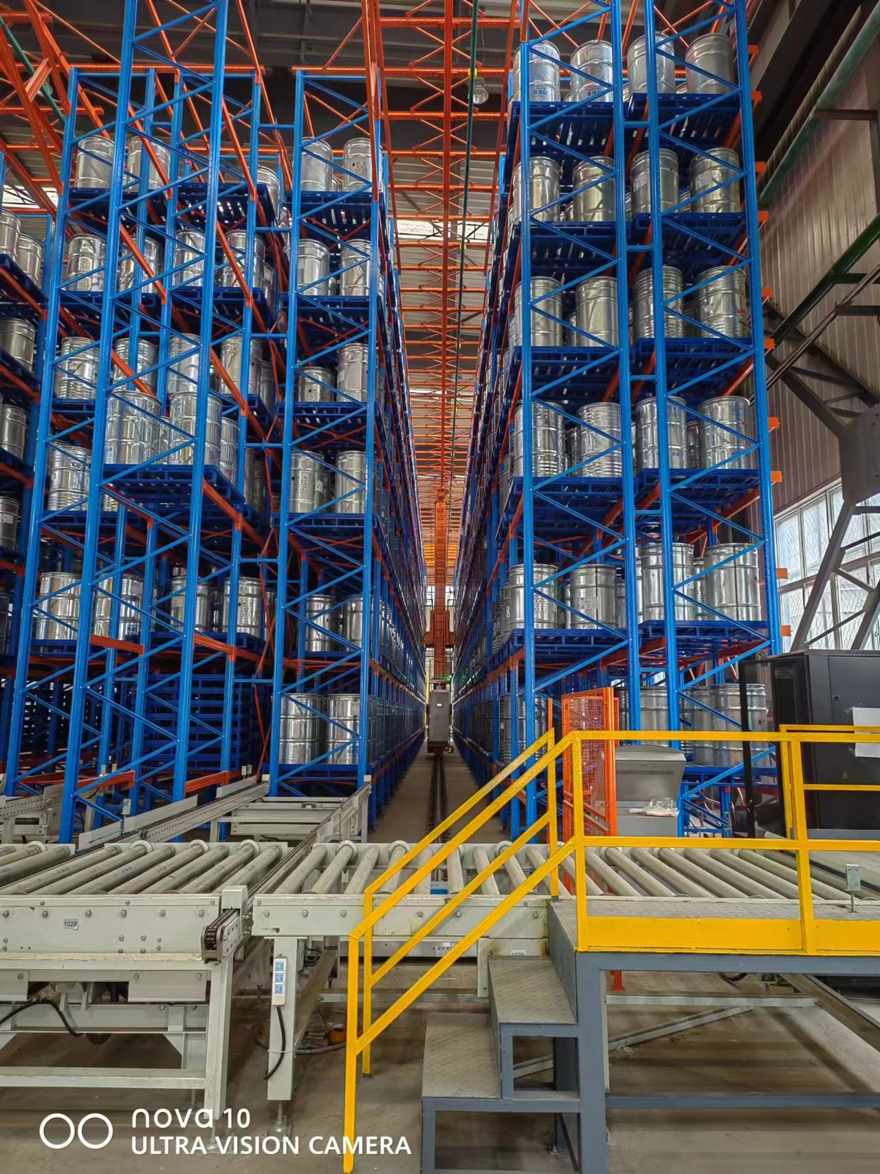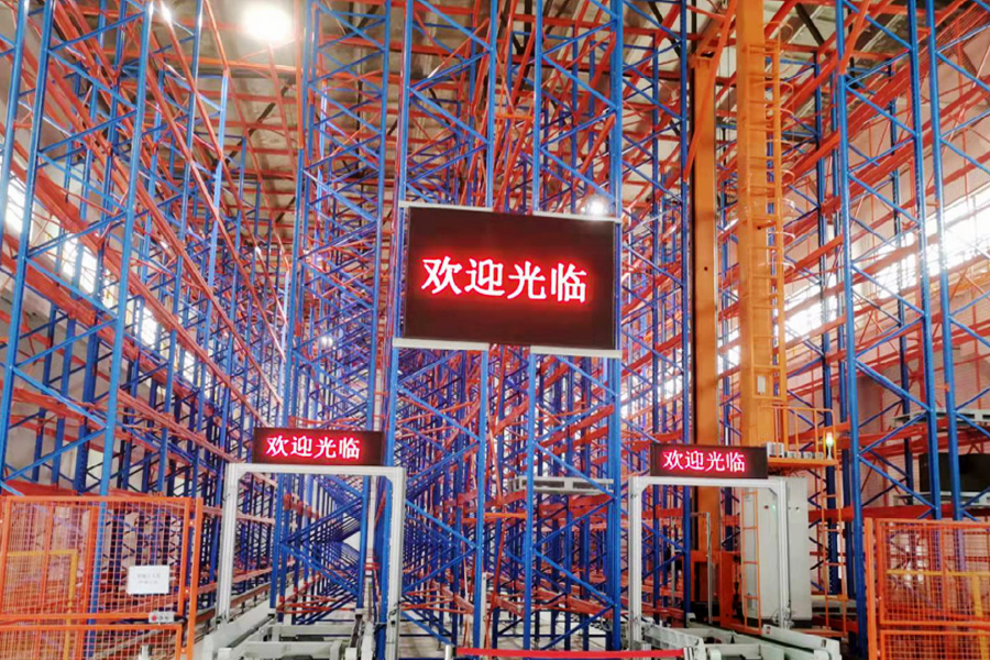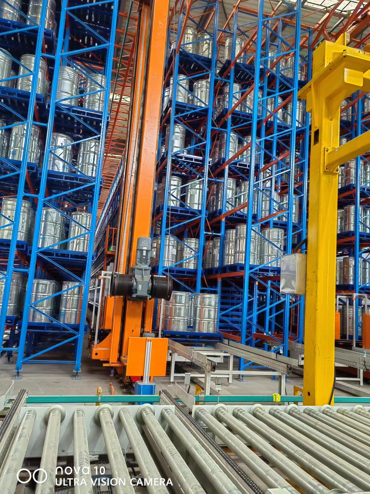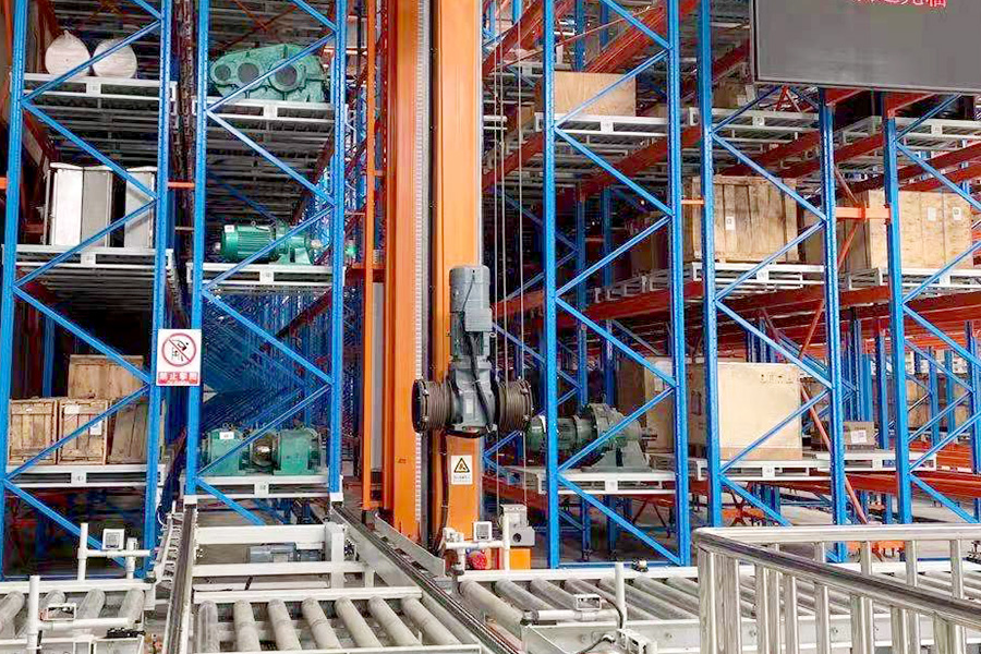 本方案總貨位2688個(雙深位2個巷道,8排28×2列6層),高度9.6m。全套設備由1臺轉彎式雙立柱有軌巷道堆垛機,雙深位雙電機貨叉,4臺鏈條機,5臺輥道機和2臺移載機;2個入庫輥道機中部安裝1套外形檢測裝置、1套稱重裝置和1只固定式條碼掃描器。全部實現自動化處理。